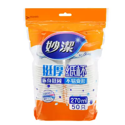 Miaojie paper cup Disposable thickened water cup Business wedding household 9 ounces 270ml50 cups