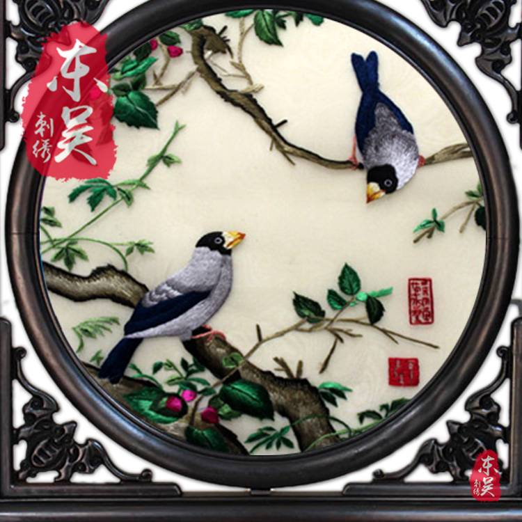 Su embroidery finished masonry screen Dongwu art decoration embroidery Ming Qing classical flowery library gave a congratulatory ceremony