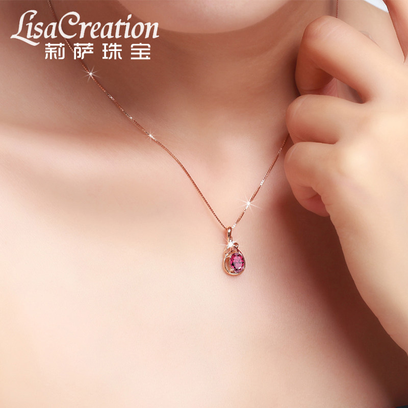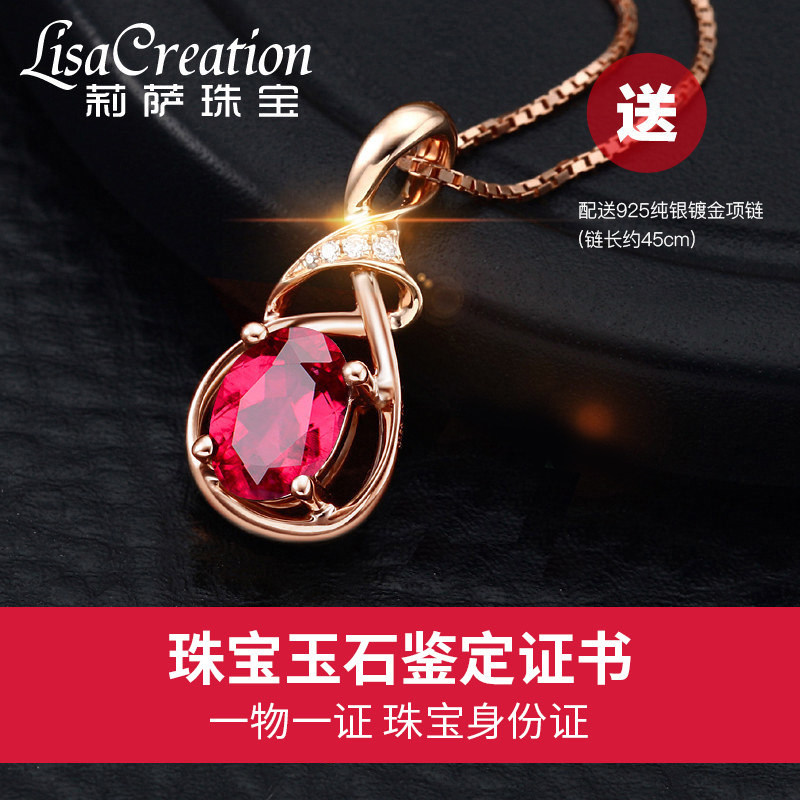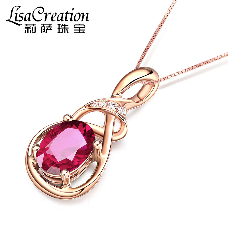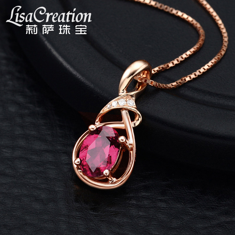 lisa creation0 75 carat rubellite pendant women's 18k rose gold inlaid colored gemstone necklace