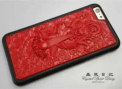 Lacquer carved lacquerware carved lacquer long tu zhu lacquer phone Protective case iPhone6 7 8Plus 11 12PROMAX