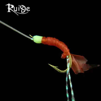 Luminous rubber bionic string hook sleeve hook red worm luminous pearl fishing perch fish Luya bait shrimp fly