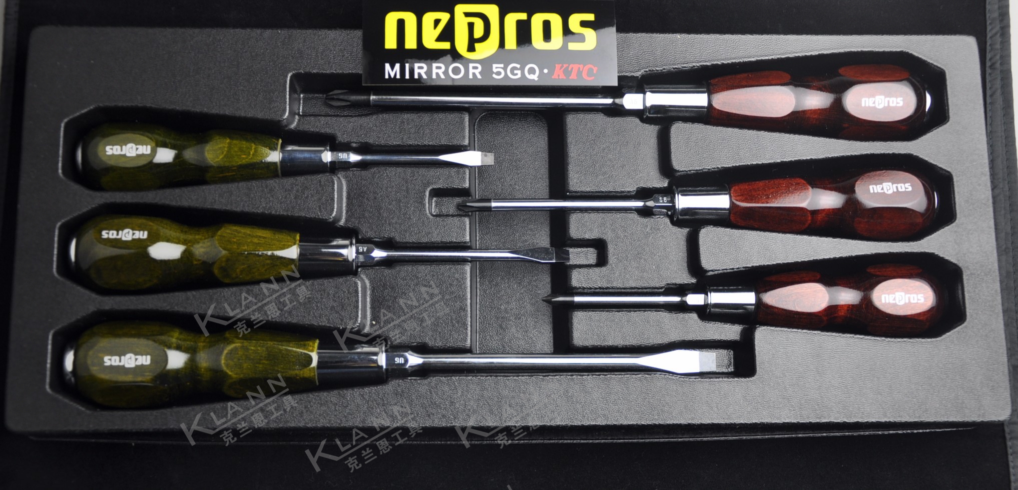 Japan KTC NEPROS wooden handle Screwser 6 pieces of screwdriver can tap on the core rod with magnetic NTD306