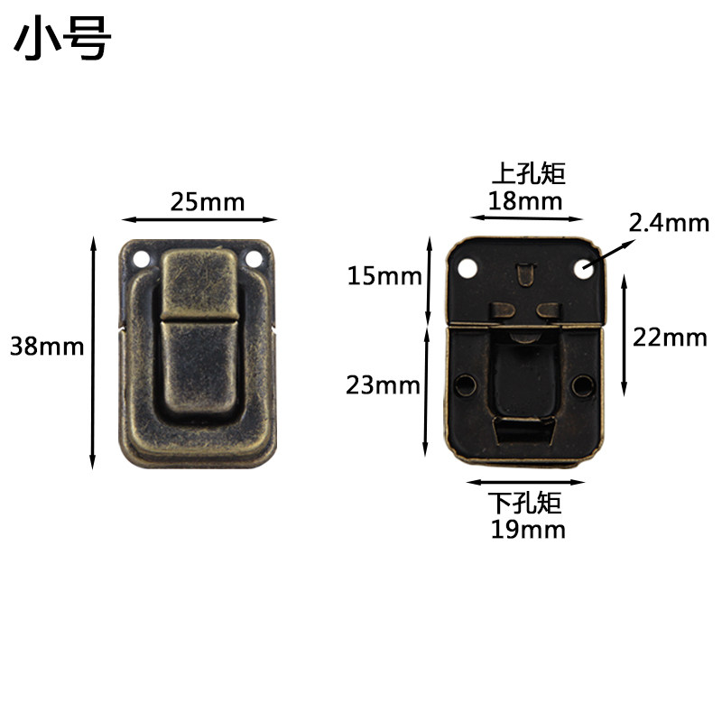 Small Number of Taiping Buckle Retro dark case Buckle Iron Square Lock Gift Box Decoration WOOD CASE BUCKLE LUGGAGE BUCKLE ACCESSORIES