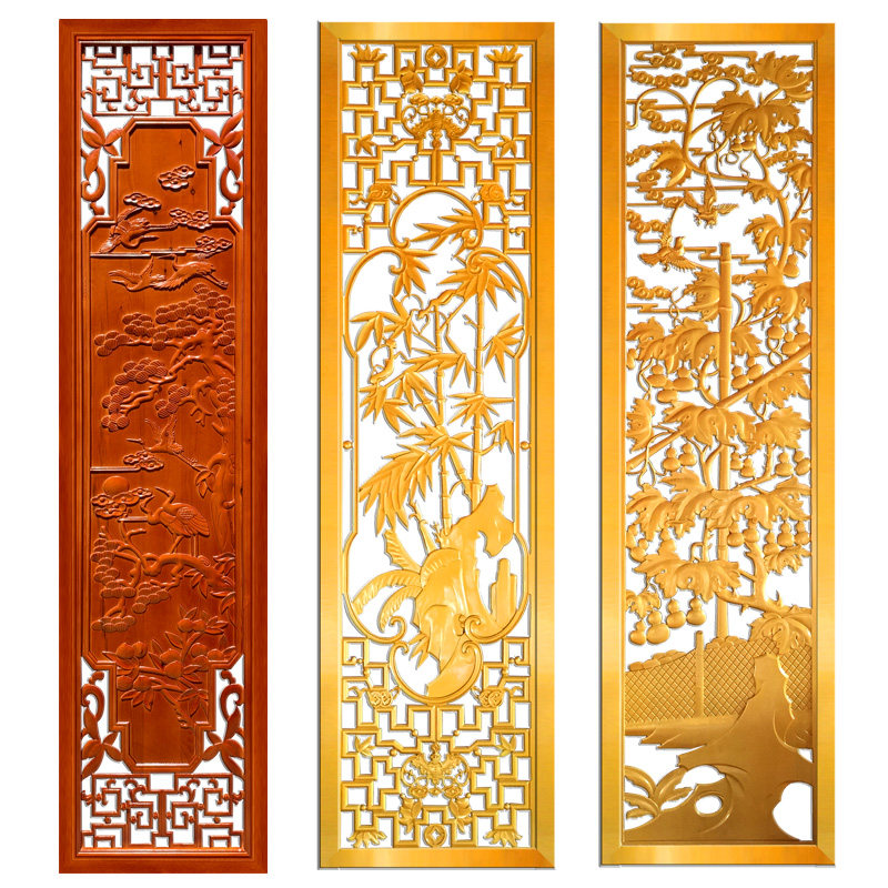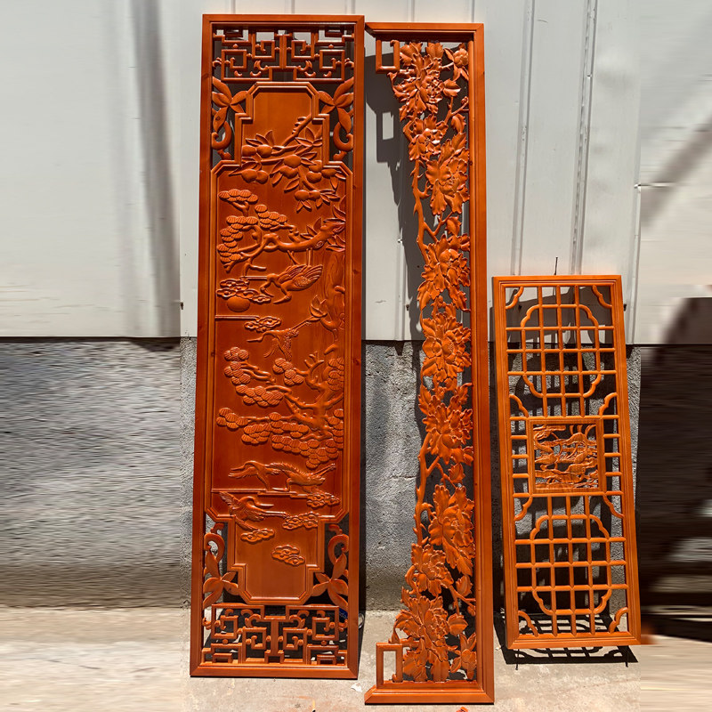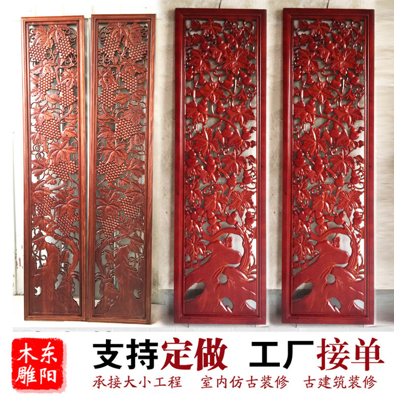 Dongyang wood carving Chinese style decoration living room carved hanging hollow TV background wall partition wall hanging decorative strip screen