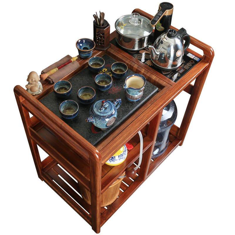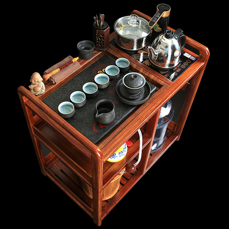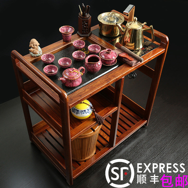 Rosewood tea car solid wood movable tea table wheel mahogany tea home kung fu small tea table Wujin Stone tea tray