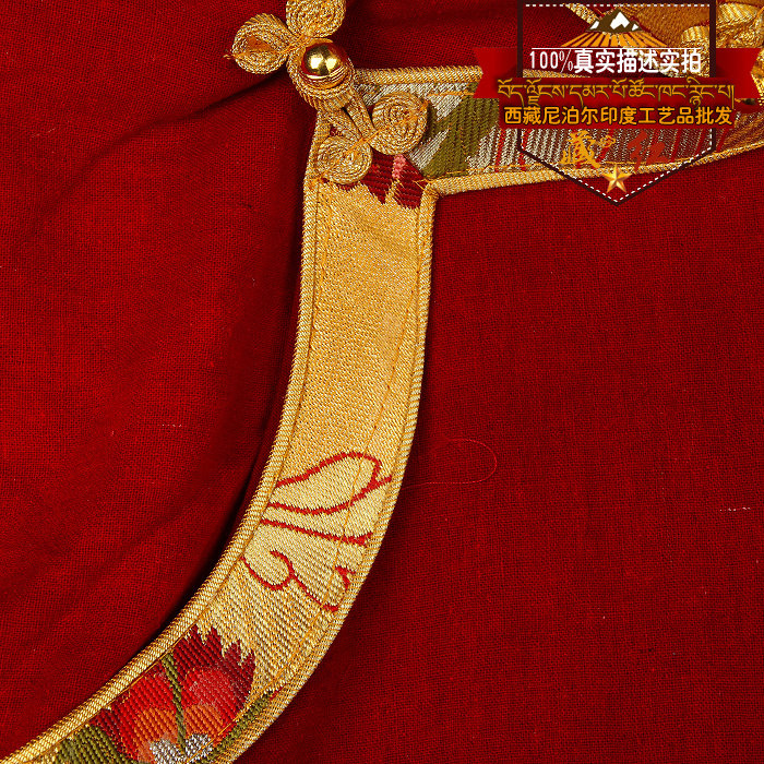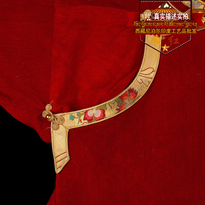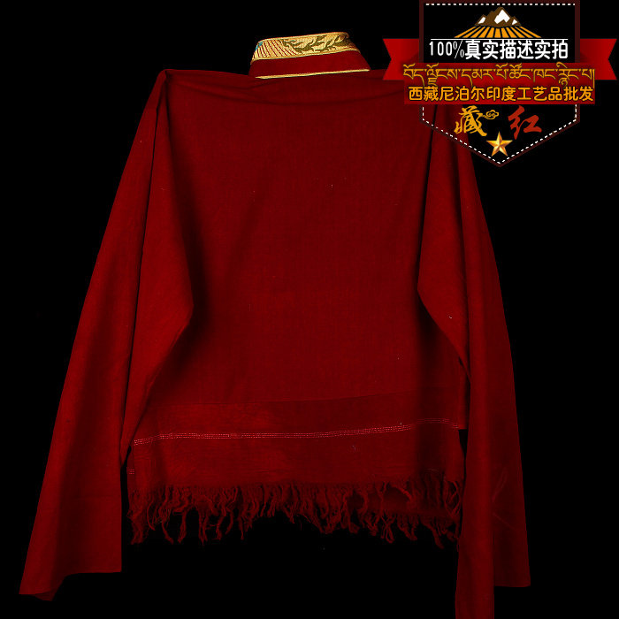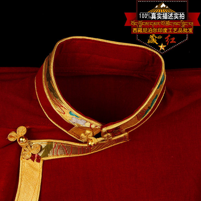 Hidden red Tibetan cotton numb high collar wrap edge shirt auspicious bipa buckle lama red hide fashion pop shirt
