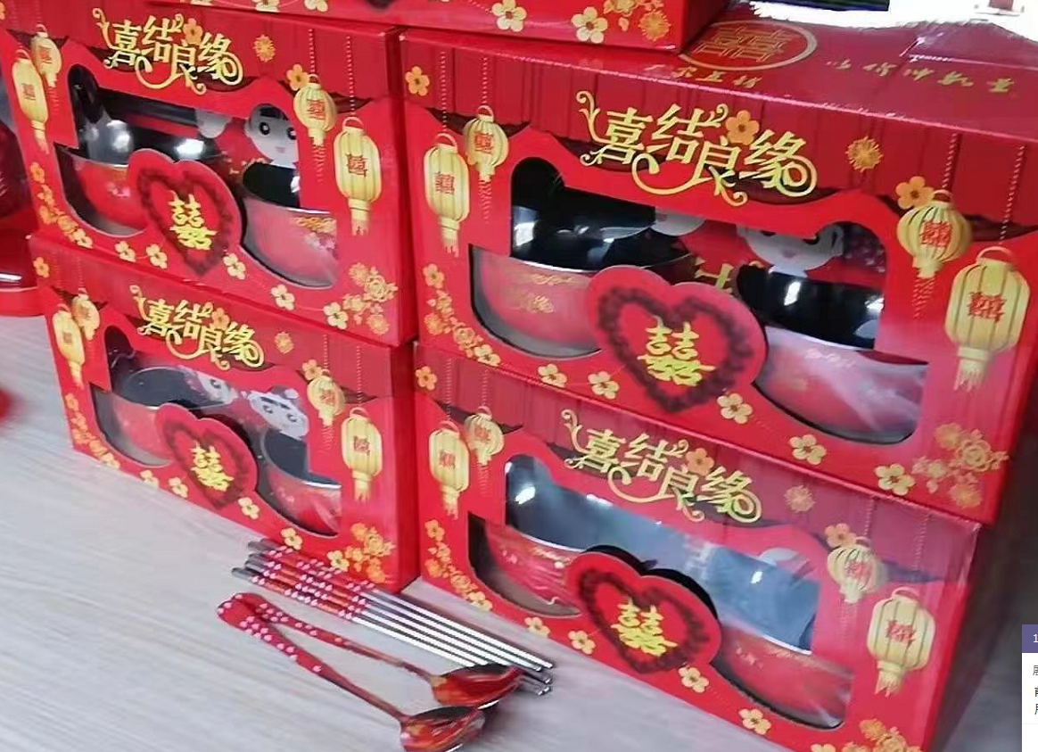 Marriage supplies Big Bowl for bowl suit Chinese stainless steel couple red bowl couple bowl back to the gift and grandson bowl