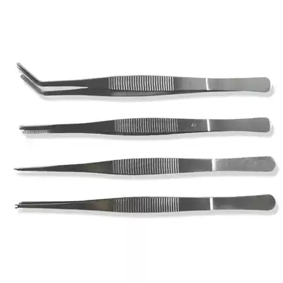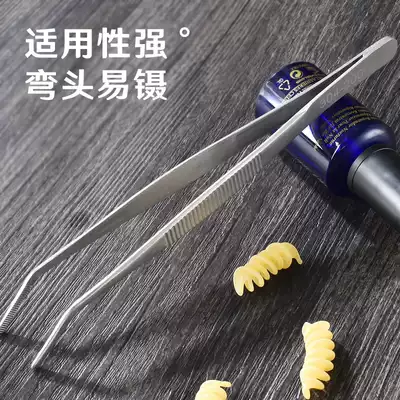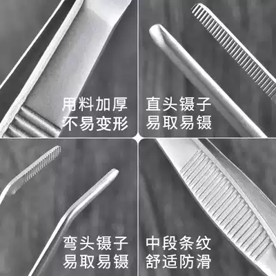 Stainless steel tweezers thickened and hardened dressing tweezers pointed round straight elbow with toothed tweezers clip
