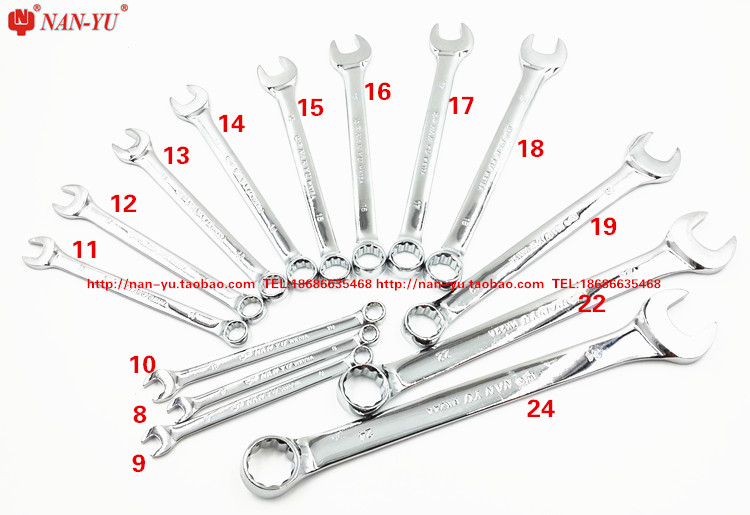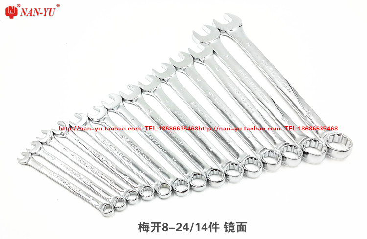 Taiwan Nanyu mirror plum open wrench 8-32mm extended plum open dual-use wrench set 8-24mm Dongliang Tools