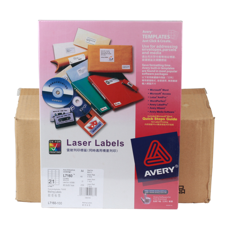 Avery Avery 63 5*38 1 Mailing Label L7160-100 sheets A4 Laser Printed Label
