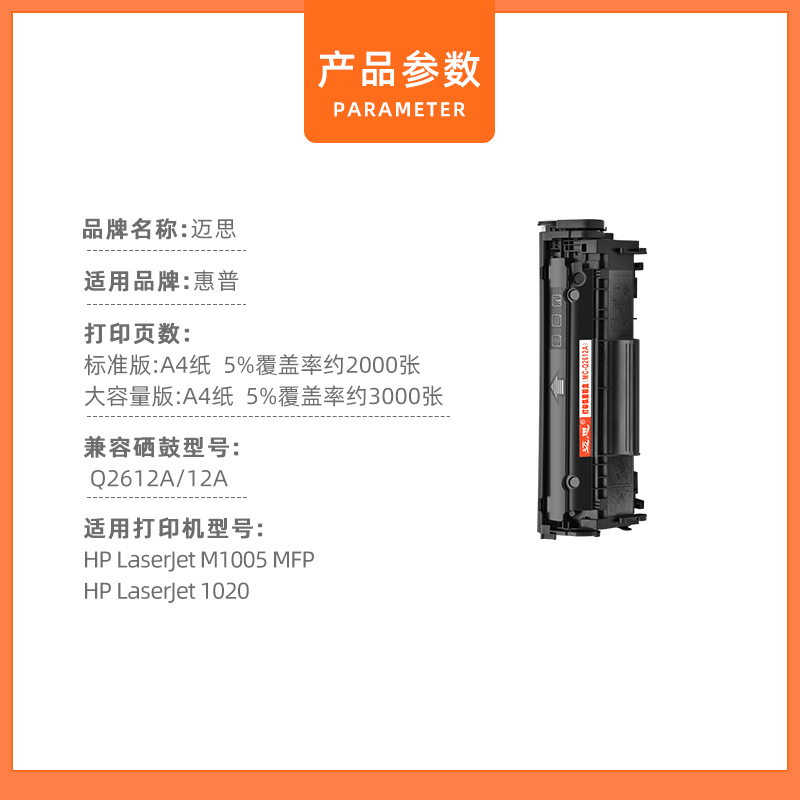 (Standard version)Q2612A toner cartridge (large capacity version)Q2612X toner cartridge