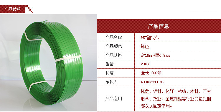 Packing belt Plastic steel belt green plastic packing belt 1608PET net weight 40 catties without paper core Jiangsu, Zhejiang, Shanghai and Anhui