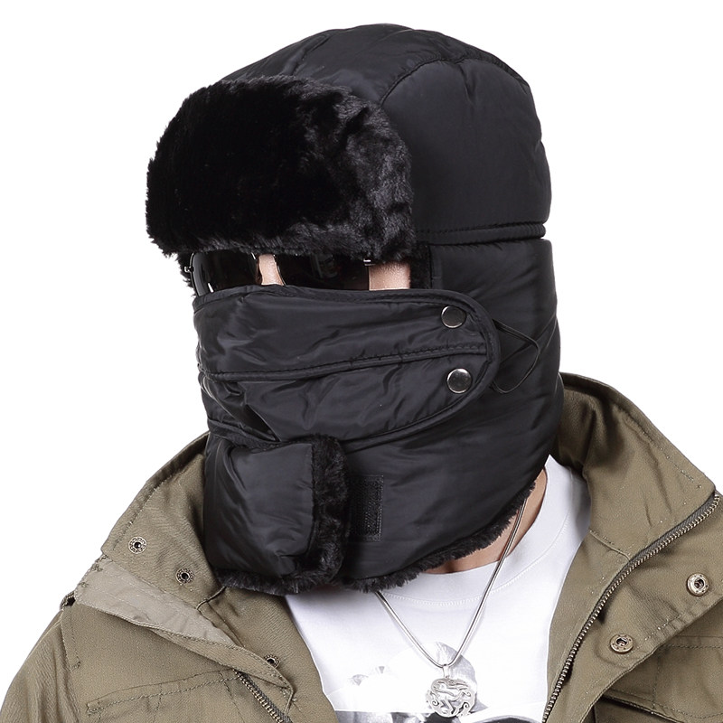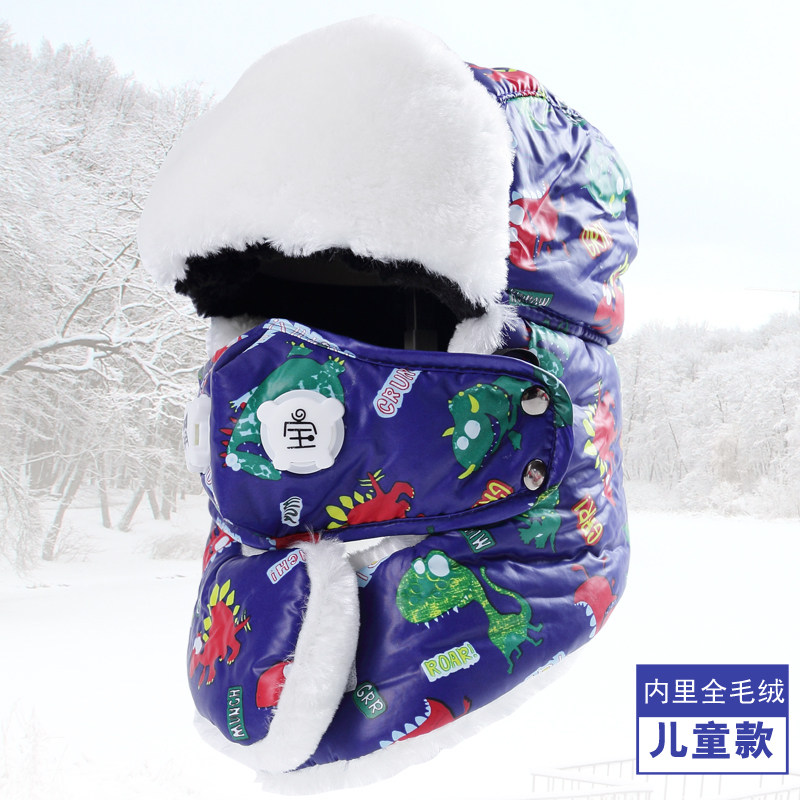Men's Hat Winter Northeast Thickening of Warm Protective Ear Bike Hat Women Children Youth Anti-Wind Chill Mask Lei Feng Cap