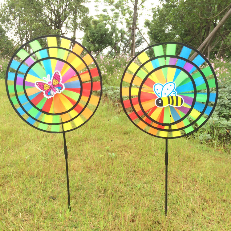 Export South Korea's three-story rainbow wheel colorful windmill children's toys outdoor round cloth windmill Holiday decoration