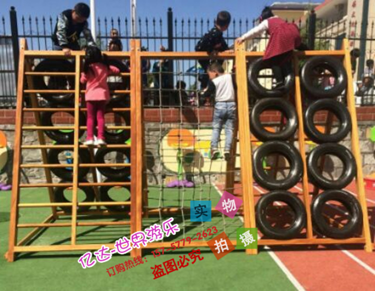 Kindergarten outdoor wooden climbing shelves for children tire climbing walls imported wooden climbing equipment combination