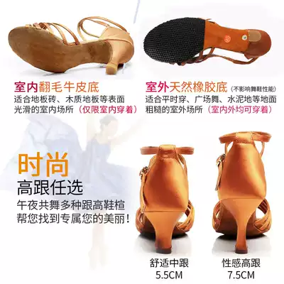 Latin dance shoes Ladies adult medium-high-heeled beginner square dance shoes Summer social dance children's soft-soled dance shoes