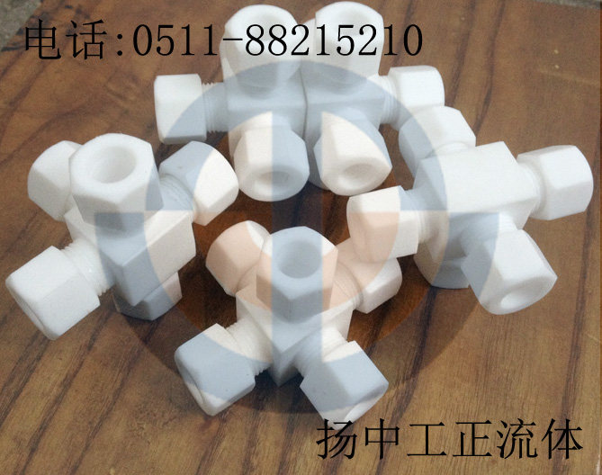 Stainless steel three-way connector Teflon corrosion protection high temperature resistant pipe connector glass tube quartz tube clamping tee