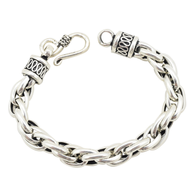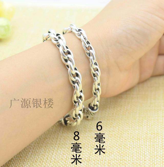 925 Thai silver domineering thick men's bracelet Korean version of the ring chain Sterling silver twist women's bracelet to send boyfriend couple gifts