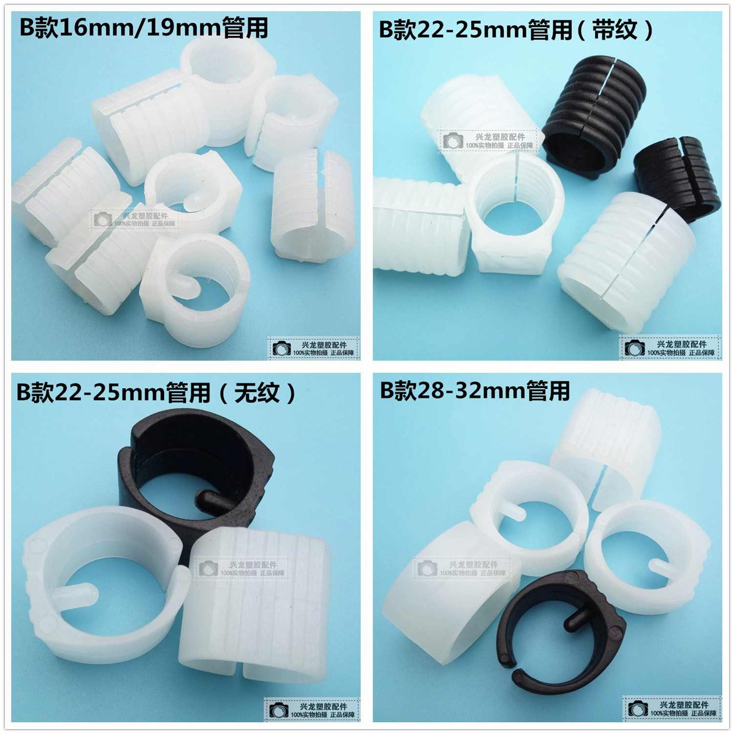Straight warp 16 round tube with (black band print) straight through 16 round tube (white with veins) straight through 19 round with tube (black with thread) straight through 19 round tube with (white band print) straight through 22
