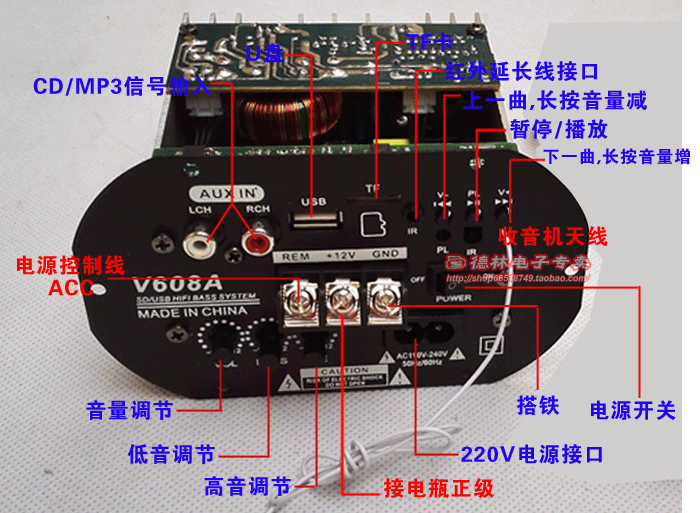High-power 12V220V car car card audio built-in Bluetooth subwoofer amplifier board modified motherboard FM