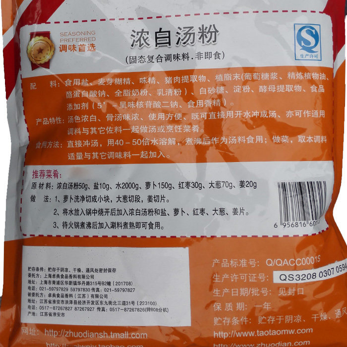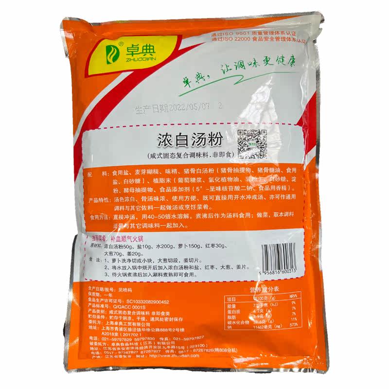 Shanghai Zhuodian thick white soup powder 1000g hot pot white bone soup base old duck soup seasoning powder bag single product