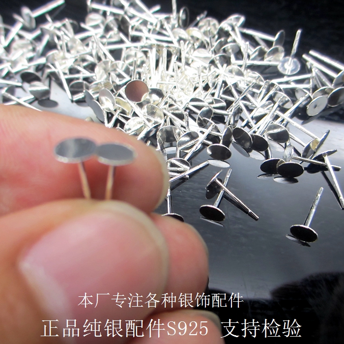 Flat head ear pin 925 pure silver ear pin flat bottom ear pin Sticky Pearl Flat Ear pure silver ear nail diy
