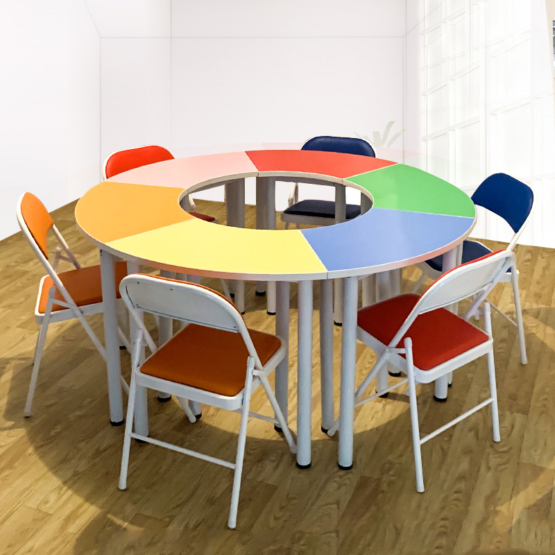 Primary school student learning desk Kindergarten color desk Shaped round table Art training combination School desk and chair