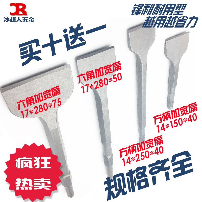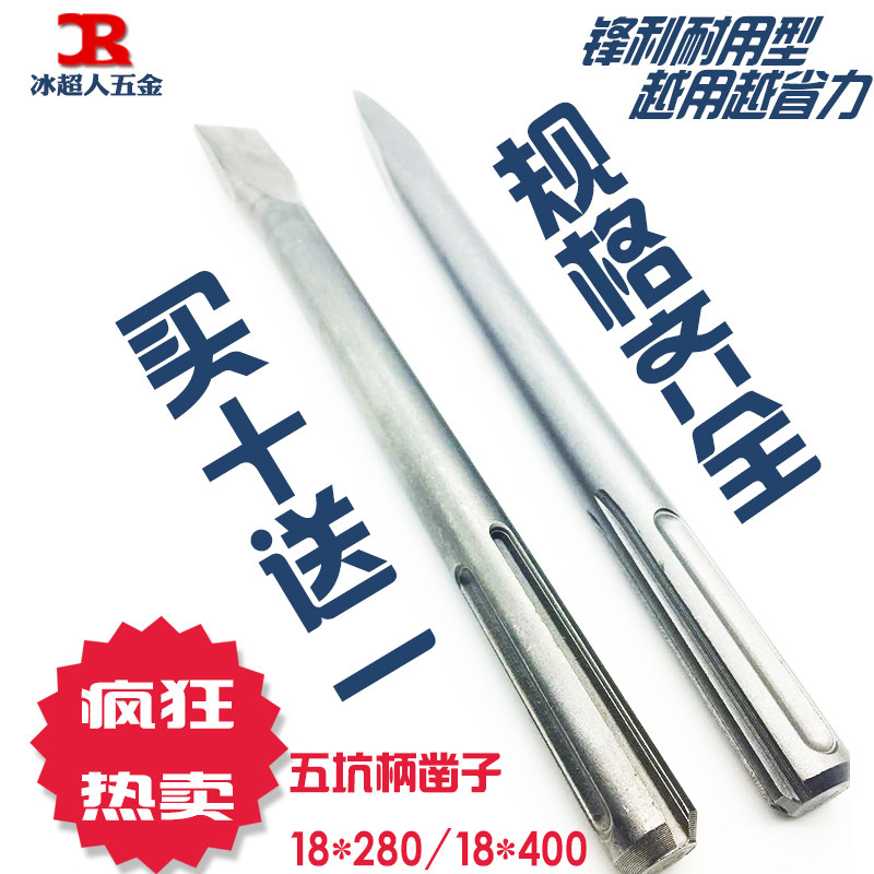 Rotary hammer drill Impact drill head Widened square shank pointed flat chisel pick brazing electric pick head Electric pick Chisel slotted five pits