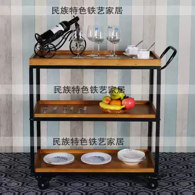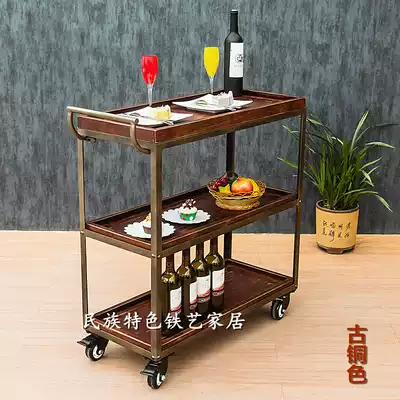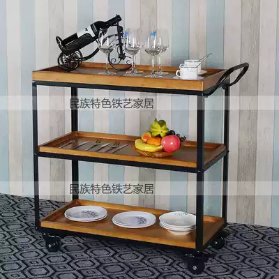 Wrought iron solid wood dining car Wine Car vintage dining room trolley mobile car Wine Rack hotel dining plate collection car