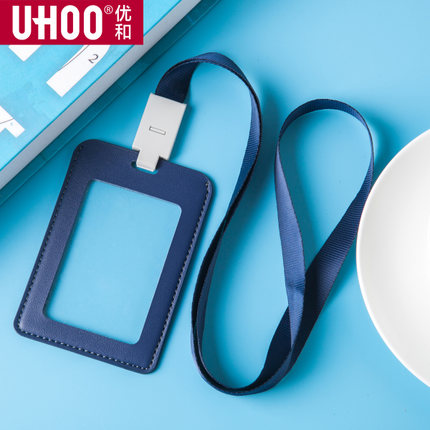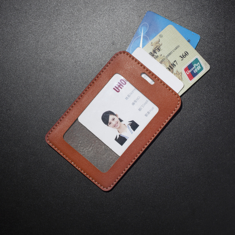 Excellent and soft leather ID card thick card case double-sided transparent breast card case lanyard company employees as badge card cover
