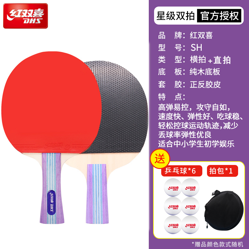 Entry (2 type I side rackets) send 6 red double happiness table tennis 1 racket set