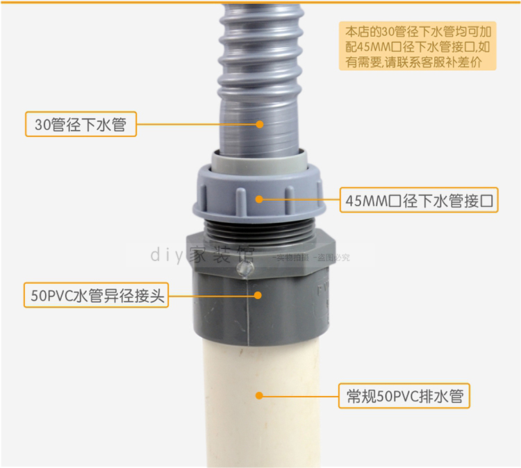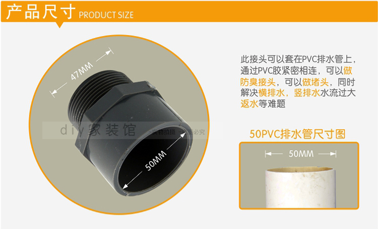 Kitchen sink water pipe joint 50PVC pipe different diameter joint basin drain pipe deodorant joint