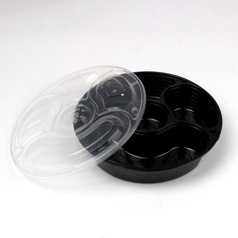 Saizhuo high-grade delivery packing box thickened fast food box Disposable lunch box Five-grid lunch box round plastic lunch box