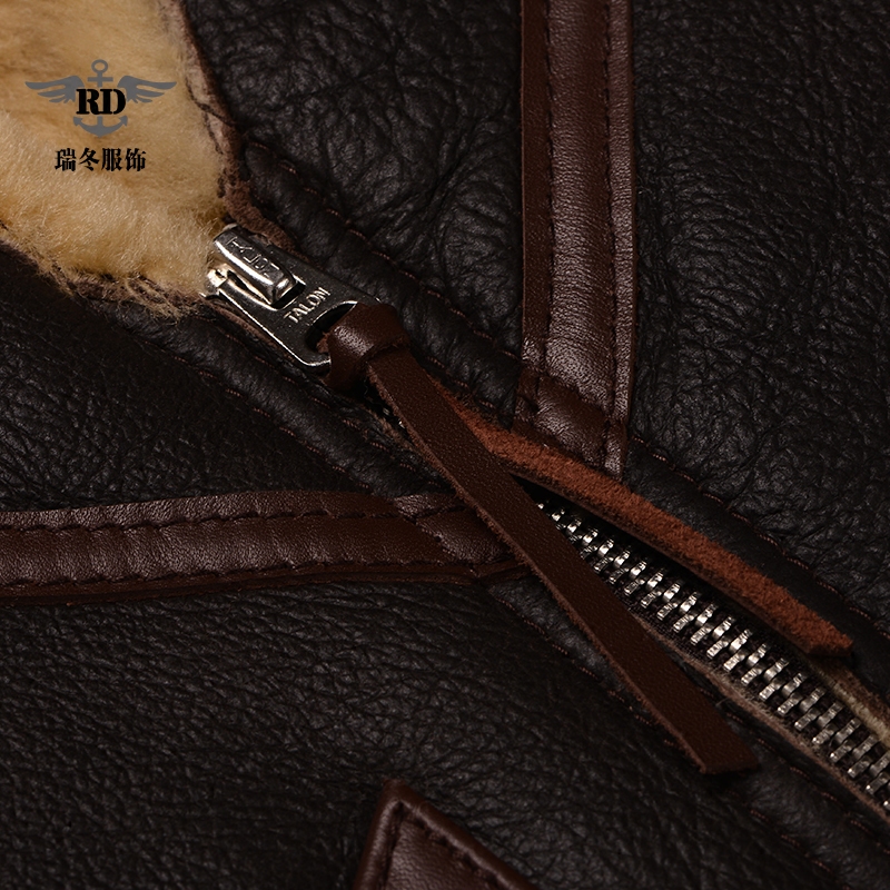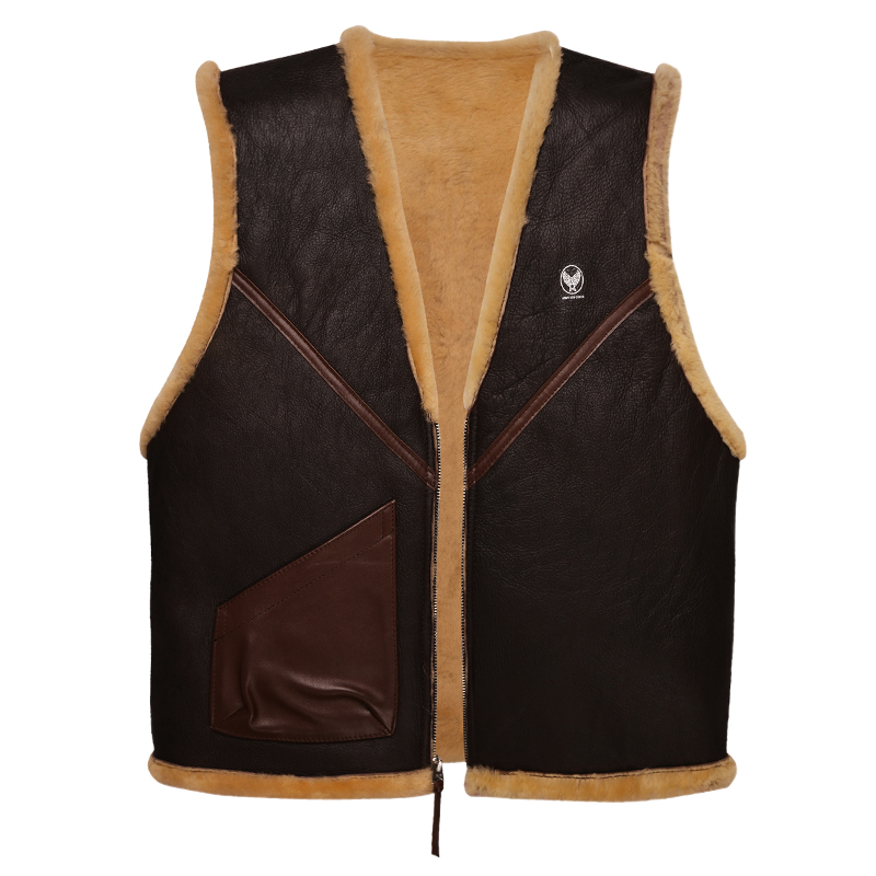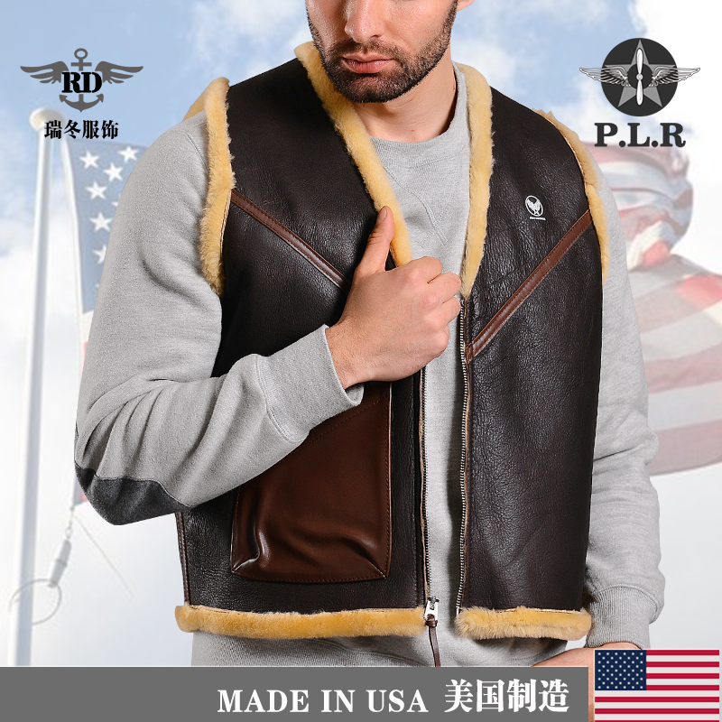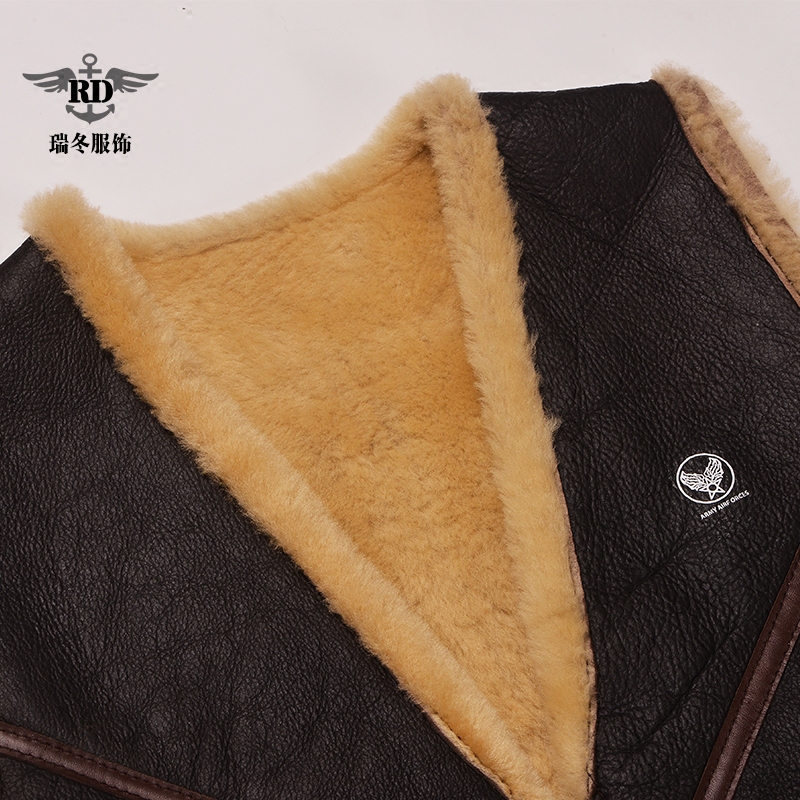 Original Imported High-end Genuine Leather Men's Fur Integrated Retro Flight Waistcoat C3 Wool shoulder