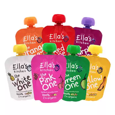 Red-Strawberry Raspberry Banana Apple Puree Yellow—Mango Banana Apricot Apple Puree Purple—Blueberry Blackcurrant Banana Apple Puree Green—Pear Kiwi Banana Apple Puree Orange—Mango Coconut Juice Banana Apple Puree