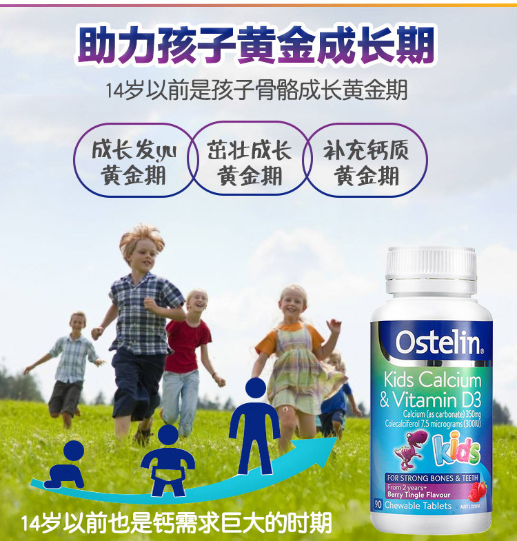 Australian Ostelin kidds Ostling small dinosaur calcium children calcium tablets Vitamin VD Chewable Tablets 90 Grains