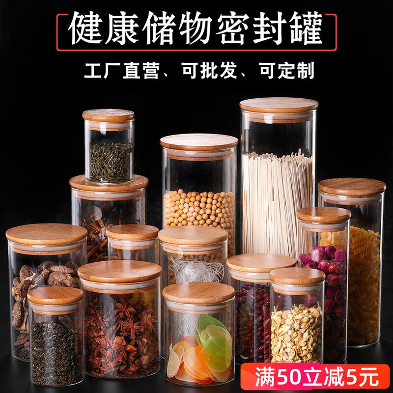 Factory direct sales heat-resistant glass jar storage jar tea pot flower tea jar can candy jar glass storage bottle sealed jar