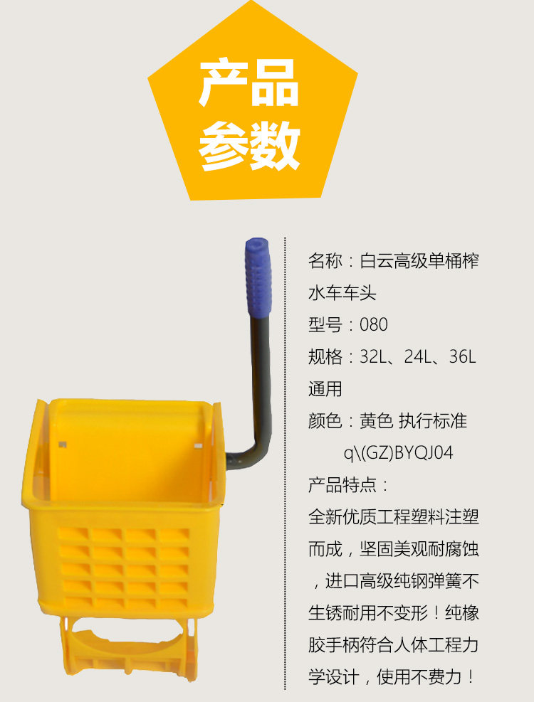 Baiyun single bucket water squeezing car head mop cloth squeezing water Hotel property cleaning Cleaning special accessories and tools