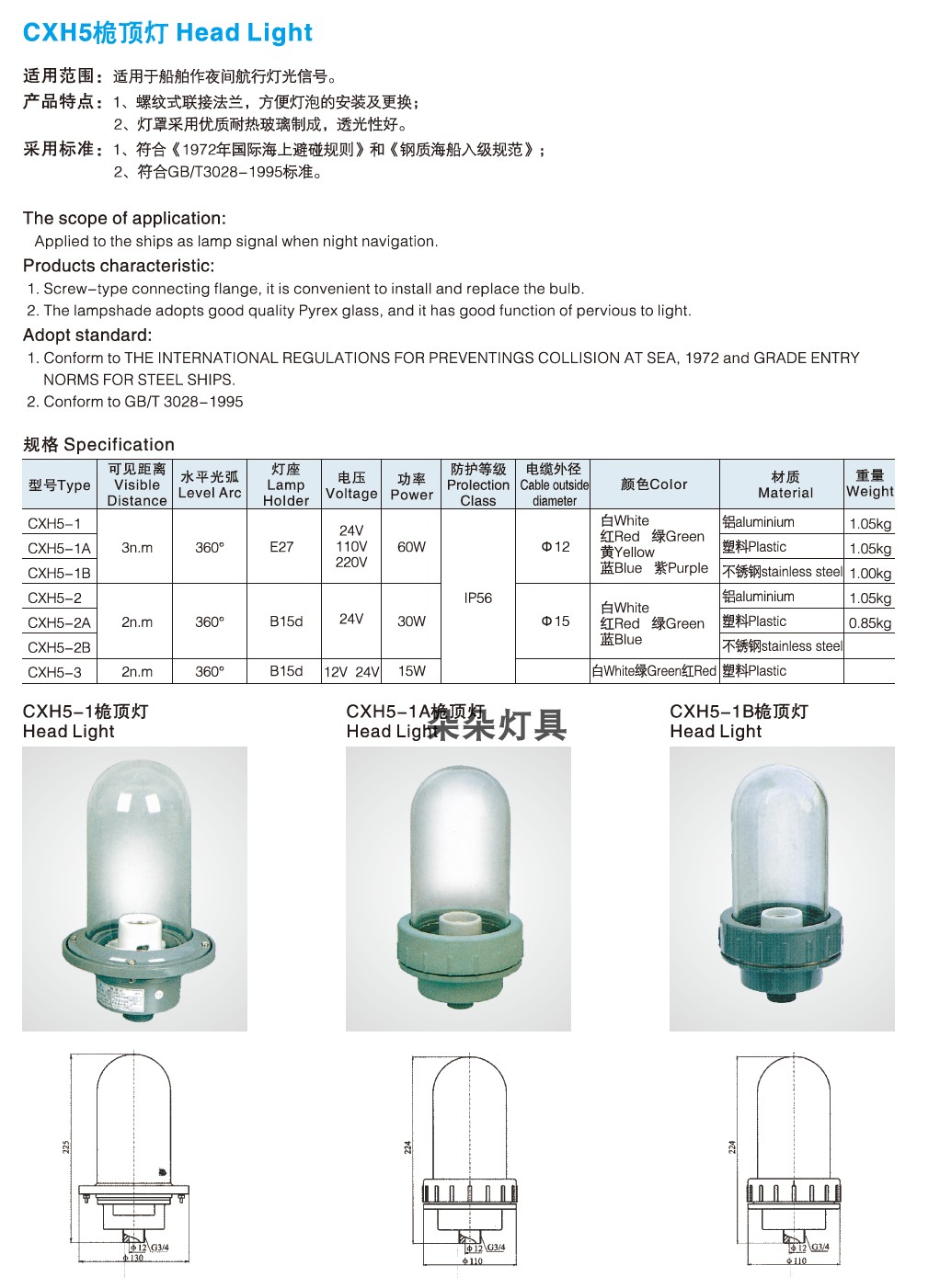 Starfish marine navigation signal lamp Marine mast ceiling lamp CXH5-3 lamp holder B15d mast lamp direct sales