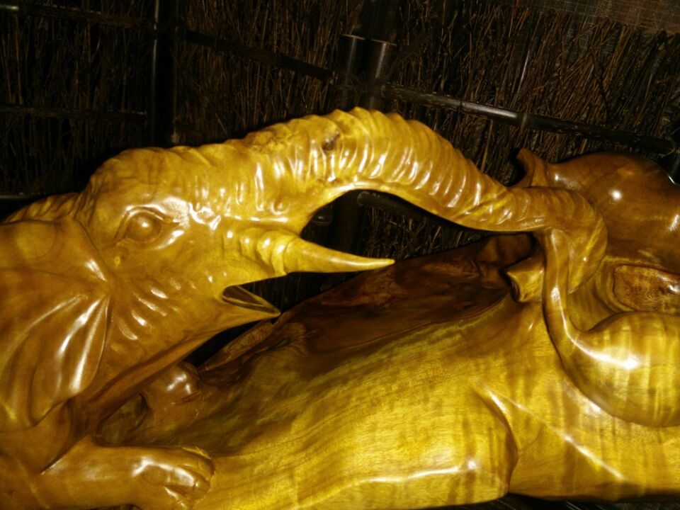 Root carved wood carvings golden silk Nannan wood sculptures Animals Merchants Elephant Home Business Decoration Auspicious Pendulum cliffs
