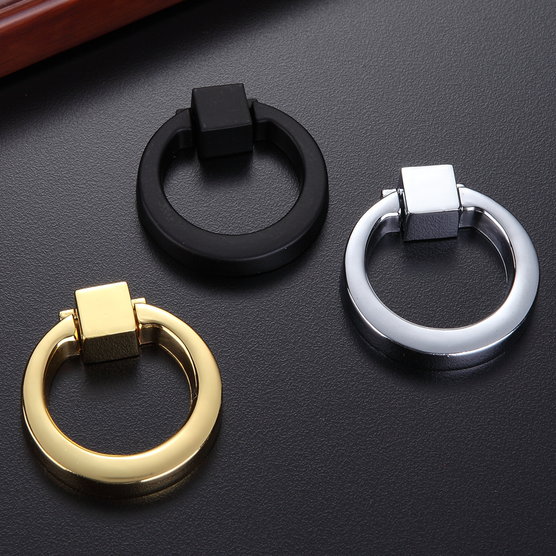 Modern minimalist ring hanging ring handle single hole bright silver gold black brushed cabinet door drawer cabinet door pull ring