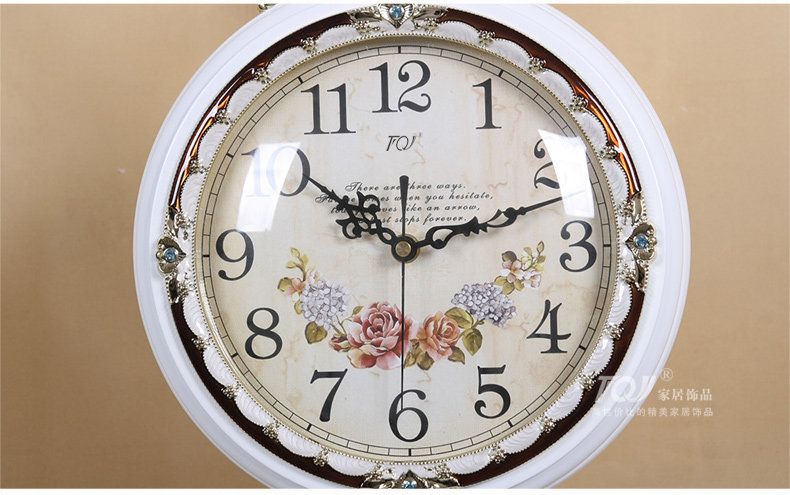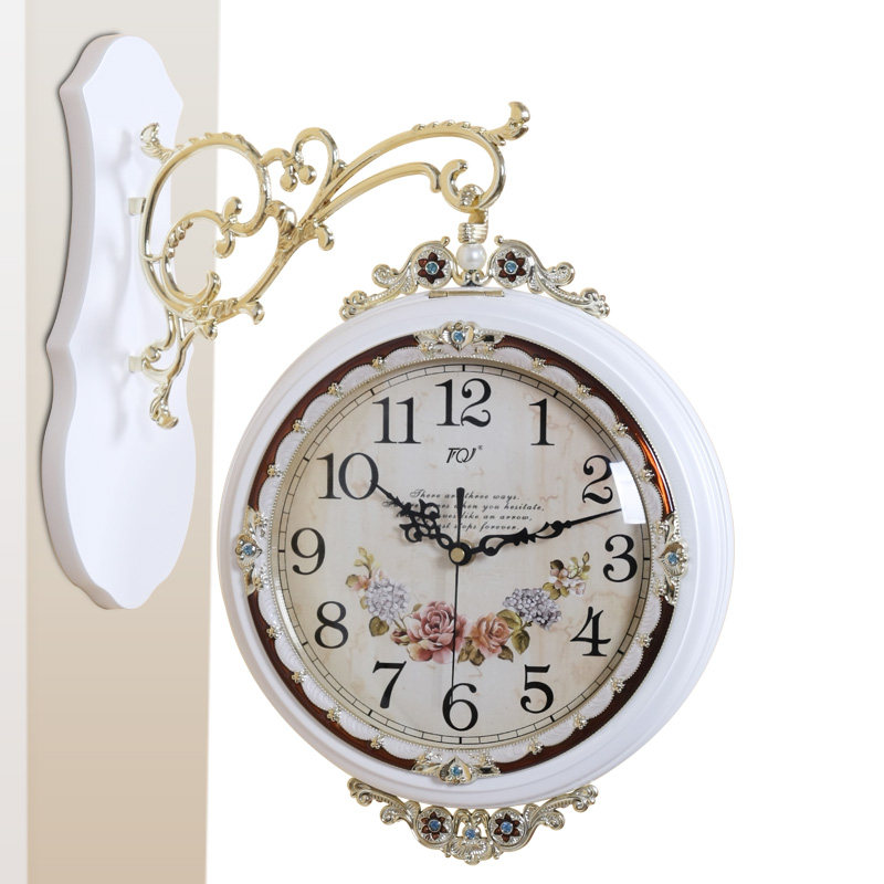 TQJ European solid wood double-sided wall clock fashion quartz clock Creative hanging watch Living room bedroom silent wall clock