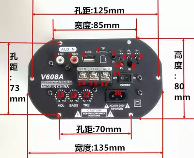 V608A 12V 220V power amplifier board 8 inch 10 inch 12 inch adjustable high and low sound high-power car plug-in card gun core
