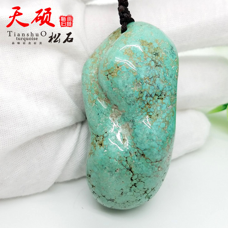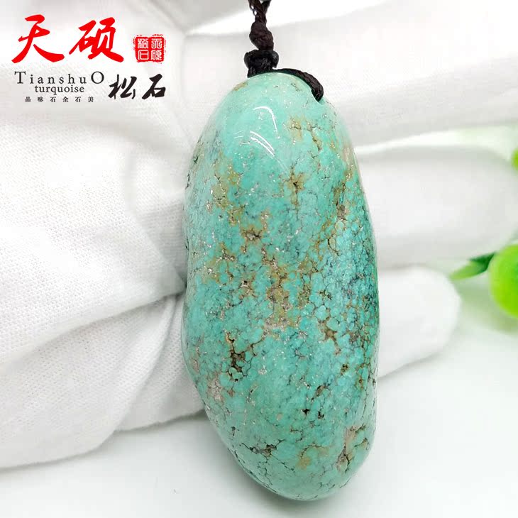 Hubei Shiyan natural non-optimized turquoise handle piece oil green rough stone pendant men's hand play stone fidelity