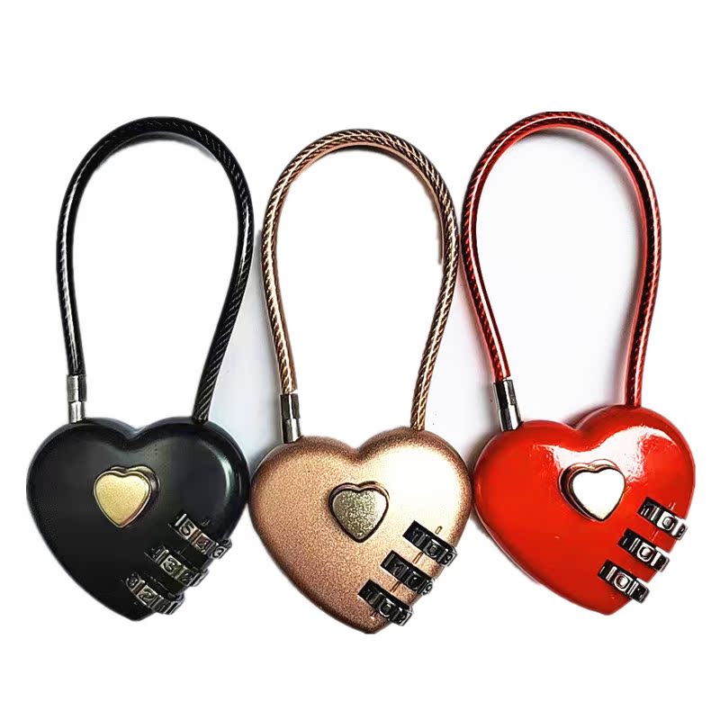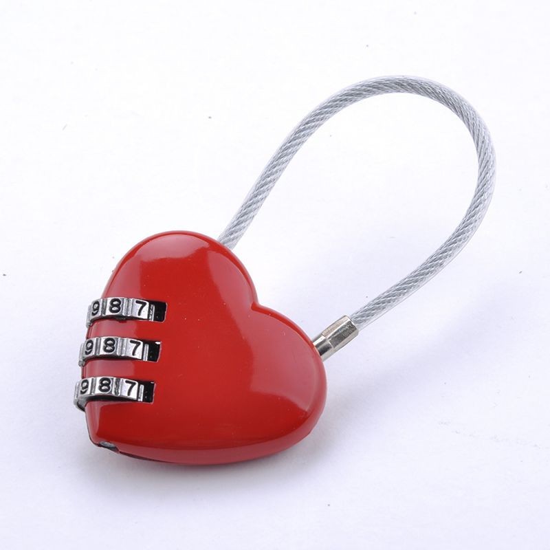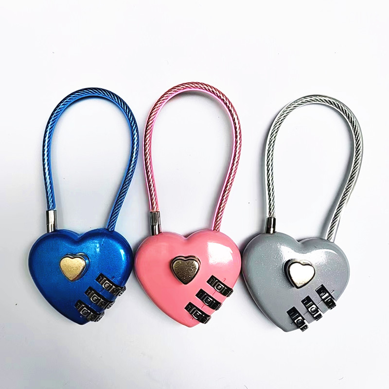 Creative wire rope password lock peach heart love-shaped password padlock safety hat lock car frame basket zipper rope lock