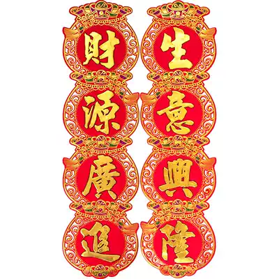 2021 Year of the ox Spring Festival festive decoration supplies four-character small couplet high-end flocking cloth business is booming Fai chun stickers