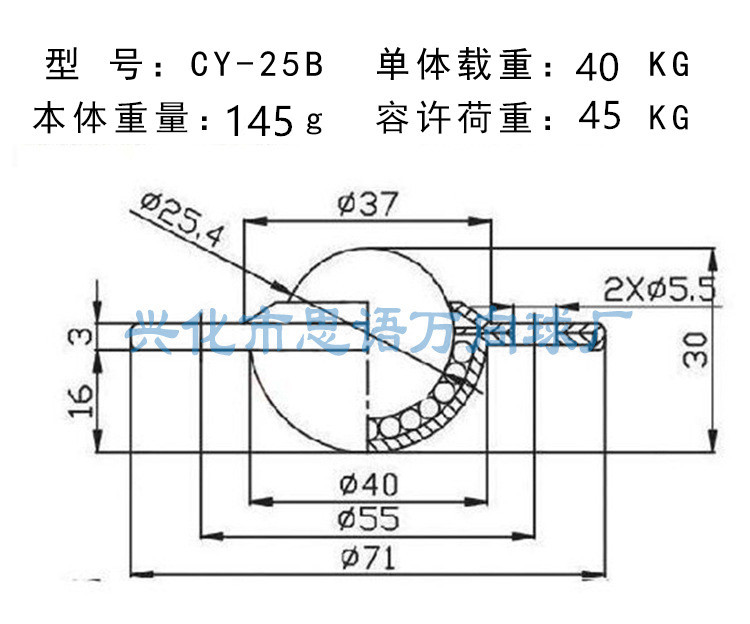 Thickened ufo wheel CY-25B universal ball base plate thickened ball bearing one inch B bull's eye WB-01