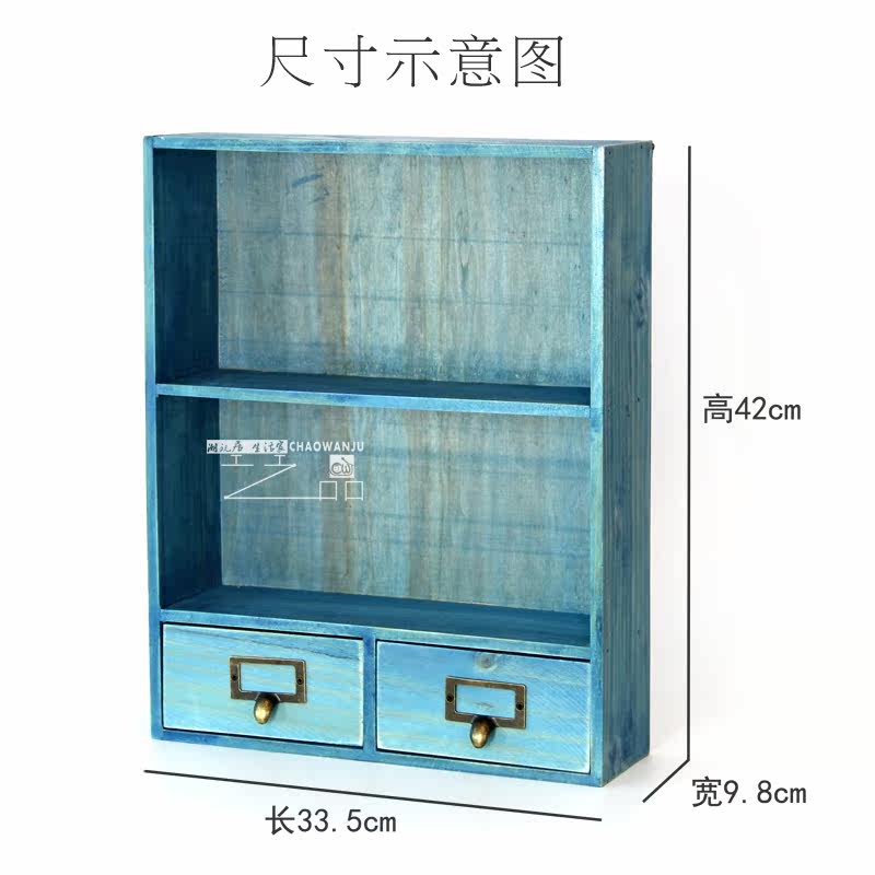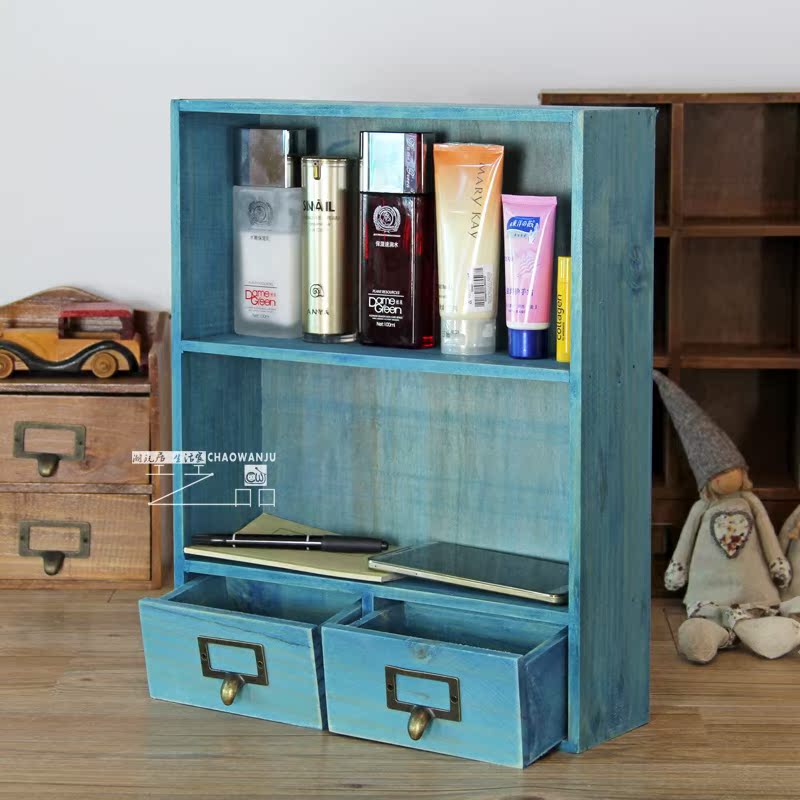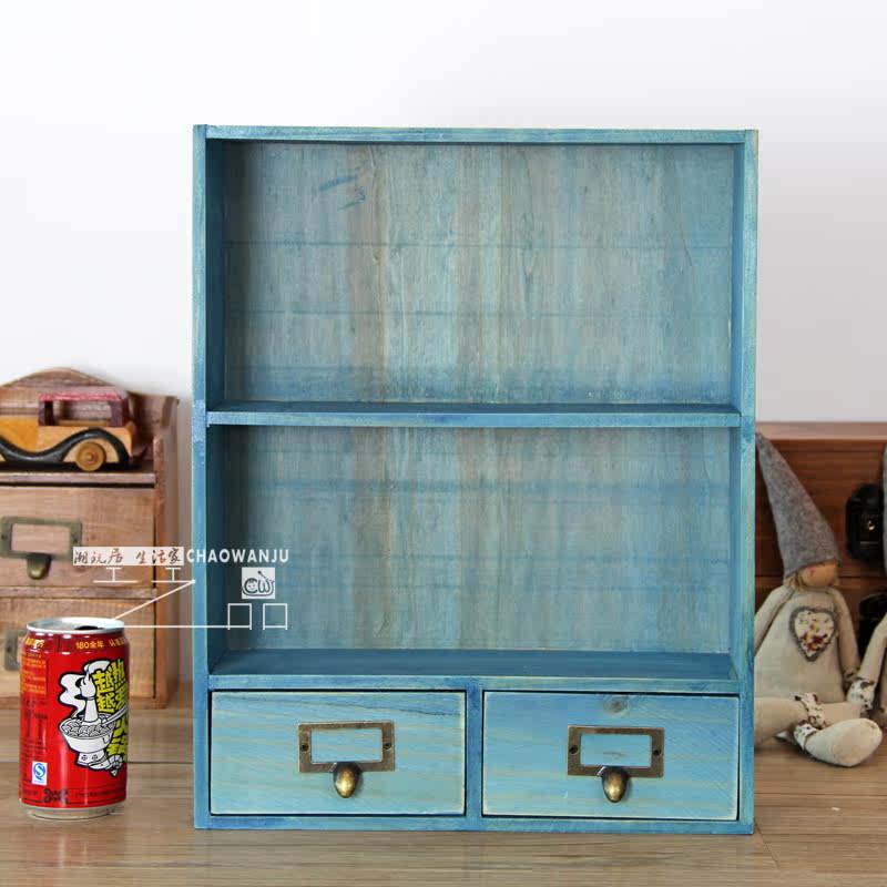 Retro to make old Mediterranean blue wooden tabletop containing case wall-mounted storage cabinet Cosmetics storage with drawers