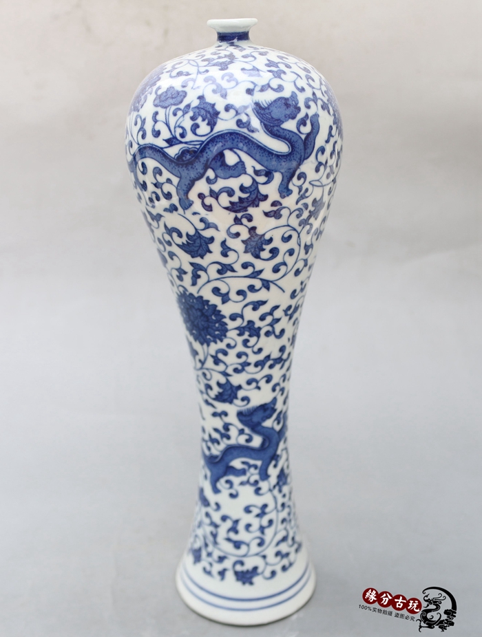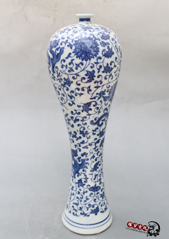 Jingdezhen ceramic imitation ancient green flower porcelain ware New classical home decoration landing craft gift pendulum decoration Longgrain plum bottle vase