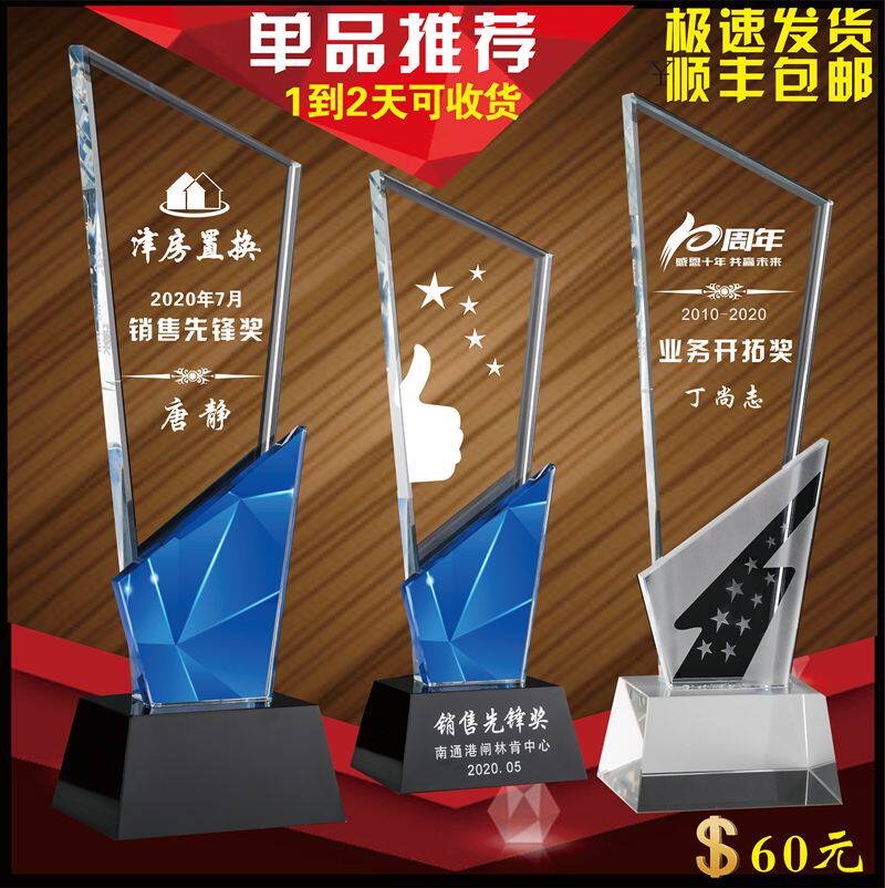 Open mold custom trophy medal crystal thumb five-pointed star glass metal competition license certificate